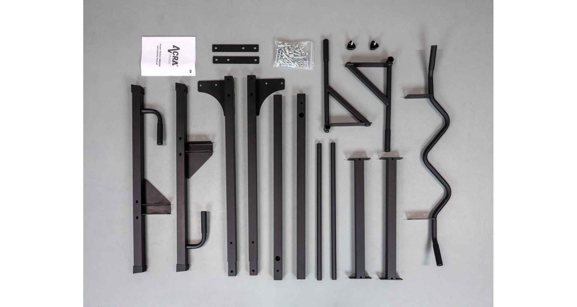 Jedná se o volně stojící stojanovou konstrukci s bradly a hrazdou. Kromě hrazdy na shyby a podstavce na přitahování či zvedání nohou disponuje odolným rámem, který je opatřen povrchovou úpravou v černé barvě. Stabilní konstrukce zajišťuje bezpečnost a komfort během cvičení.