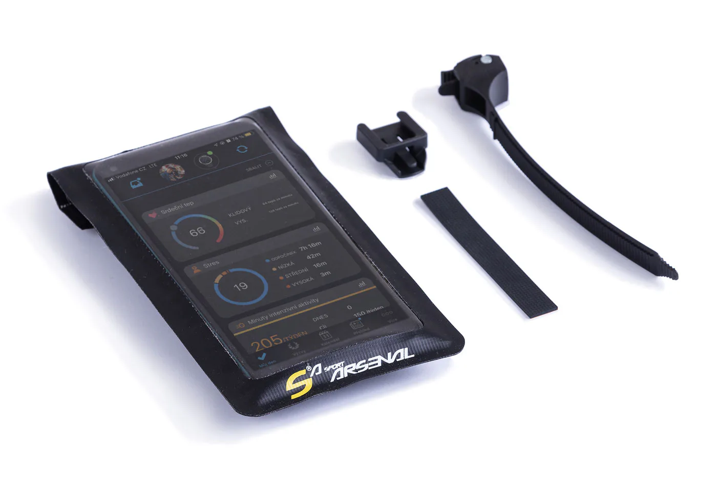 Praktické pouzdro na telefon s dotykovým displejem. Pouzdro je vyrobeno z vodotěsného materiálu, který účinně chrání telefon před nepřízní počasí.