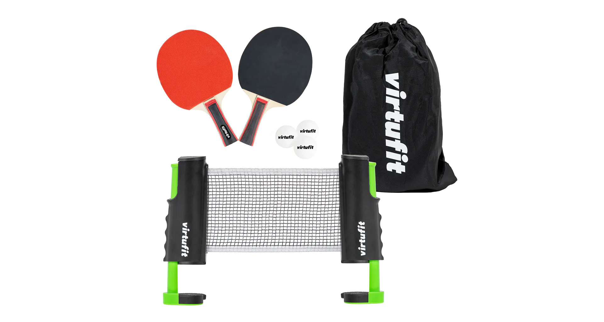 S nastavitelnou sadou stolního tenisu VirtuFit můžete přeměnit jakýkoli stůl pro stůl na pingpong. Rozkládací set na stolní tenis je vhodný pro stoly, které jsou široké max. 170 cm a mají stolní desku vysokou max. 6 cm. Připevněte síťku ke stranám a můžete ihned začít hrát.