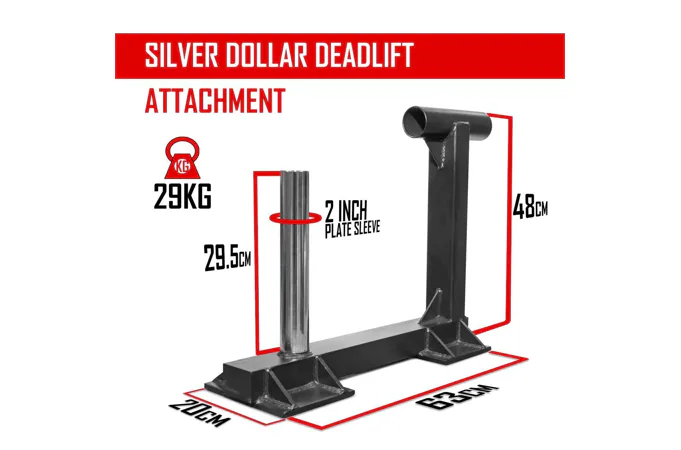 STRENGTHSYSTEM Silver Dollar Deadlift jsou praktické nástavce pro silové "fajnšmekry". Jedná se o přídavné adaptéry, kterými můžete posunout vaše "mrtvoly" na další úroveň. Jsou vhodné do všech komerčních, ale i domácích posiloven, jsou velmi skladné a mají snadnou integraci na olymp. osu.Každý adaptér na mrtvý tah Silver Dollar váží 29 kg (dohromady tedy oba váží 58 kg). Díke své základně ve tvaru T mají i skvělou stabilitu, když osu odhodíte.