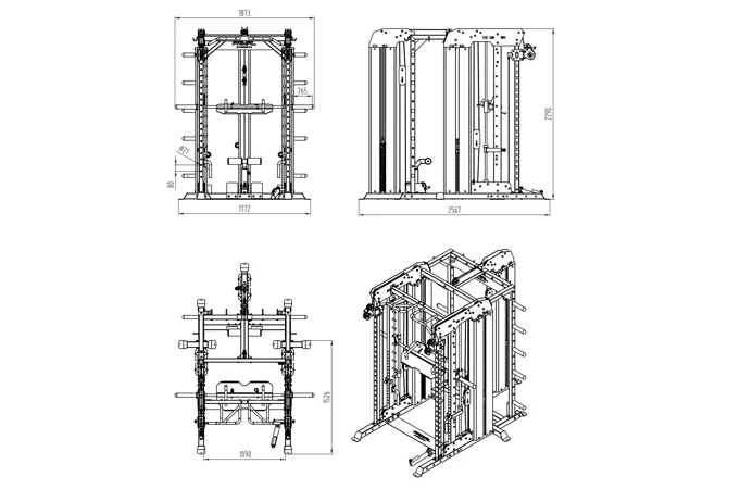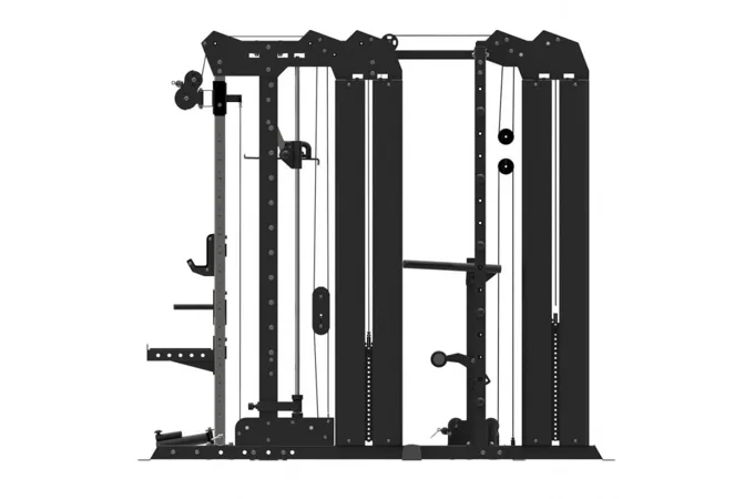 Multipress PRIMAL Commercial Monster Rack je navržený tak, aby zastoupil 5 nejpoužívanějších strojů v komerčních posilovnách. Na jednom malém prostoru naleznete: multipress, vertikální legpress, posilovací klec, horní a spodní kladku a také výškově nastavitelné protisměrné kladky.