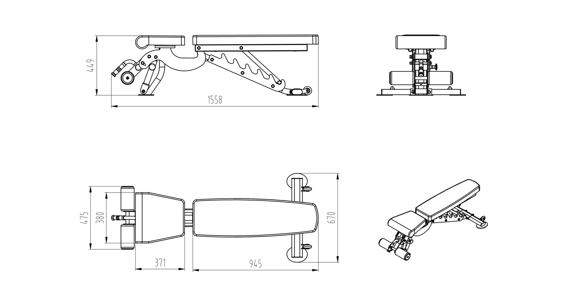 Posilovací lavice se rozkládá na půdorysu o rozměrech (d x š x v) 151 x 68 x 126 cm, nezabere vám tedy moc prostoru a stále zůstane dostatek místa i na další stroje.