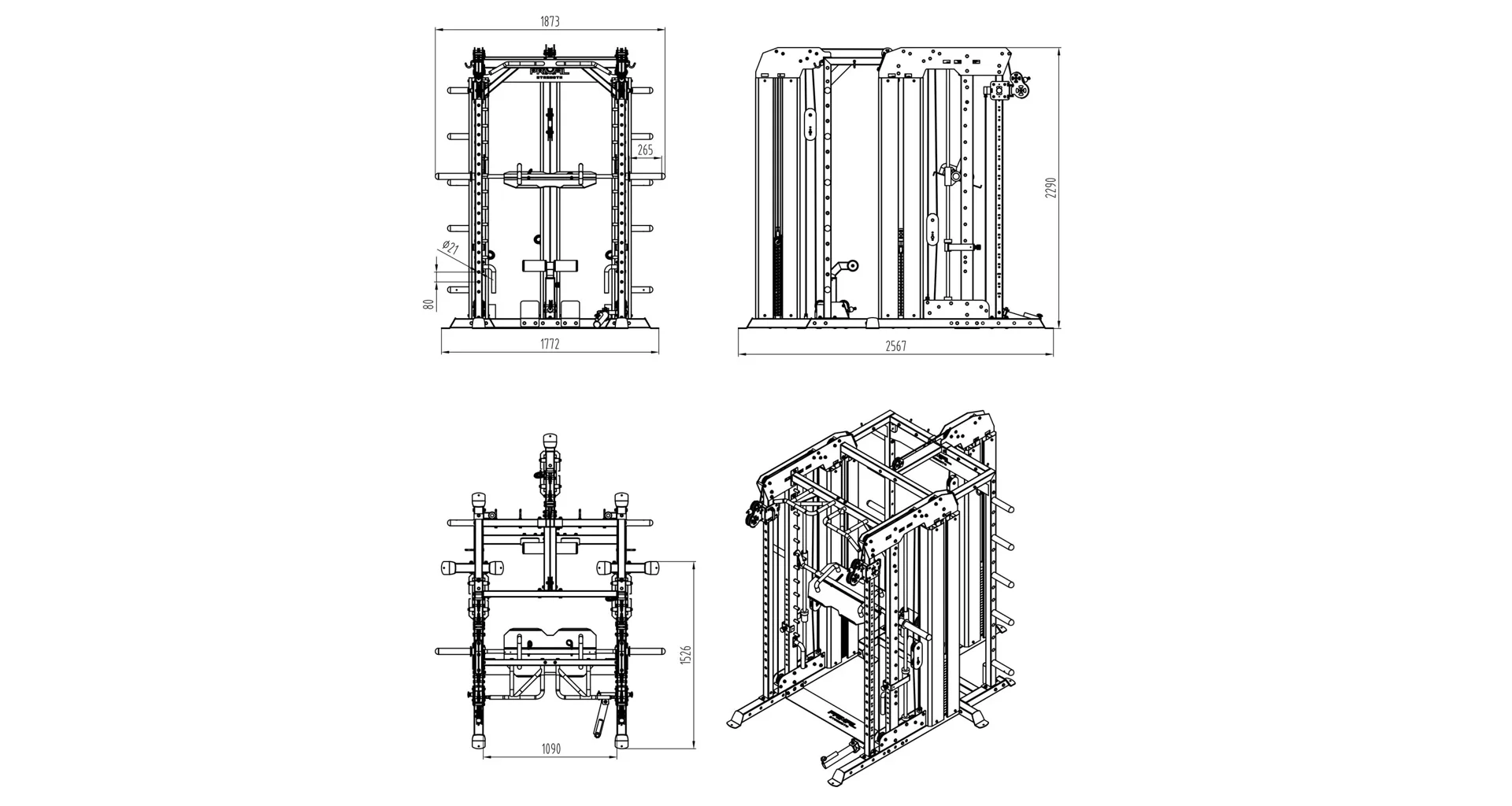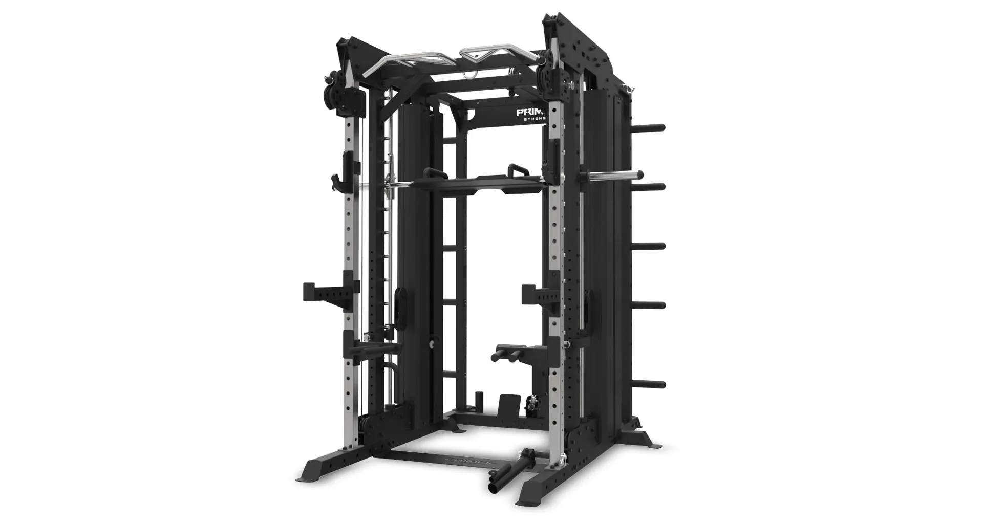 Multipress PRIMAL Commercial Monster Rack je navržený tak, aby zastoupil 5 nejpoužívanějších strojů v komerčních posilovnách. Na jednom malém prostoru naleznete: multipress, vertikální legpress, posilovací klec, horní a spodní kladku a také výškově nastavitelné protisměrné kladky.