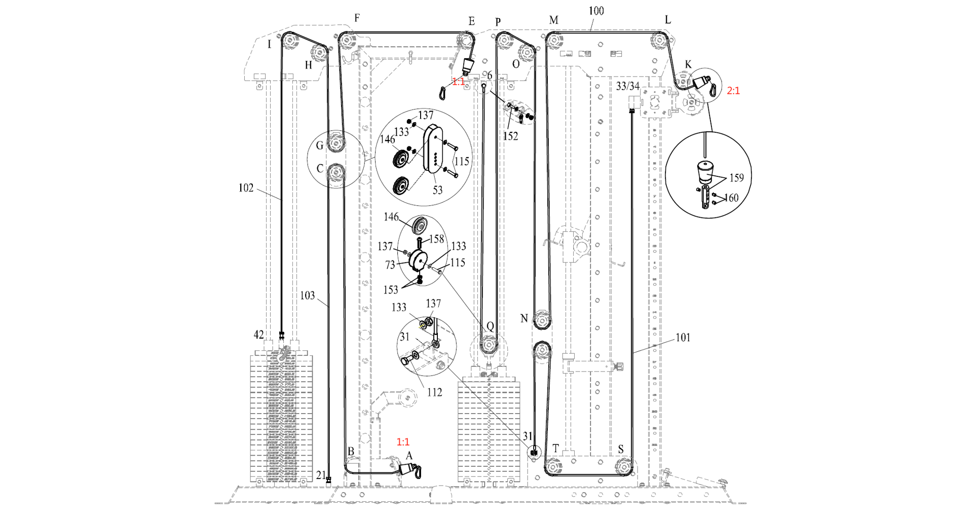 PRIMAL Commercial Monster Rack je vybanen dvěma sady závaží o váze 100 kg k protisměrným kladkám a jednou sadou o váze 125 kg pro horní a dolní kladku. Celková hmotnost instalovaného závaží je 325 kg.