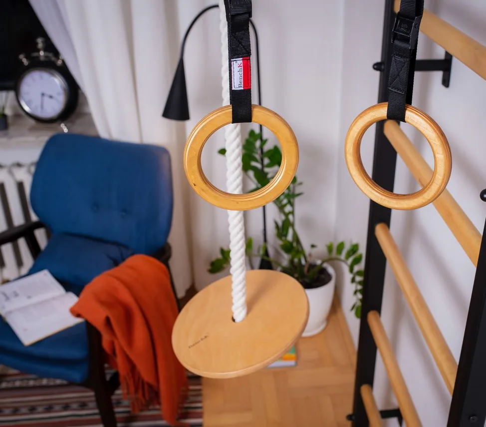 Příslušenství na žebřiny pro děti A23 jsou doplňky určené pro žebřiny BenchK 210B a BenchK 310B. Součástí je závěsná houpačka na laně a gymnastické kruhy s nastavitelnými popruhy.