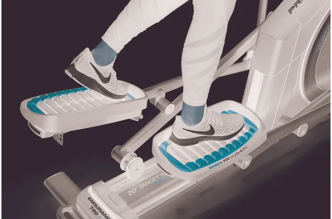 Eliptický trenažér PROFORM Endurance 720E patří k trenažérům známého amerického výrobce fitness strojů. Jedná se o domácí cross se setrvačníkem v přední části stroje s nastavitelnou délkou kroku a nastavitelným sklonem. Masivní rámová konstrukce disponuje nosností do 125 kg.