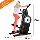 Trenažér nabízí 25 kg těžký setrvačníkový systém (14 kg setrvačník) pro plynulý chod tréninku a magnetický brzdný Silent resistance systém s 22-ti elektronicky ovládanými úrovněmi odporu. Délka kroku je 13 cm a výška 26 cm.