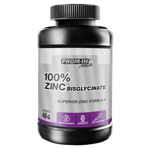 PROM-IN 100% Zinc Bisglycinate obsahuje zinek ve vysoce využitelné chelátové vazbě bisglycinátu zinečnatého. Jedná se o bisglycinát skládající se z dvojmocných iontů zinku vázaného na dvě molekuly glycinu. Výhodou minerálů v chelátové vazbě je, že jsou elektricky neutrální a lépe se dostávají v nezměněné podobě na místo určení v organismu. Zinek je v produktu vázán na neesenciální aminokyselinu glycin, kterou si tělo běžně syntetizuje. Jedná se tedy o látku tělu vlastní.