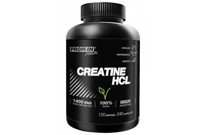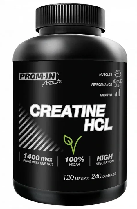 PROM-IN Creatine HCL vegan představuje mimořádně vstřebatelnou formu kreatinu, která poskytuje veškeré benefity kreatinu bez vedlejších účinků jako jsou nadýmání, zadržování vody nebo křeče. Za své unikátní vlastnosti vděčí Creatine HCL svému procesu výroby, kdy přidáním hydrochloridu vzniká z běžné molekuly specifická sloučenina. Tím se zvyšuje jeho rozpustnost a biologická dostupnost. Jeho velkou výhodou je, že je snadno absorbovaný organismem a proto nevyžaduje konzumaci sacharidů.