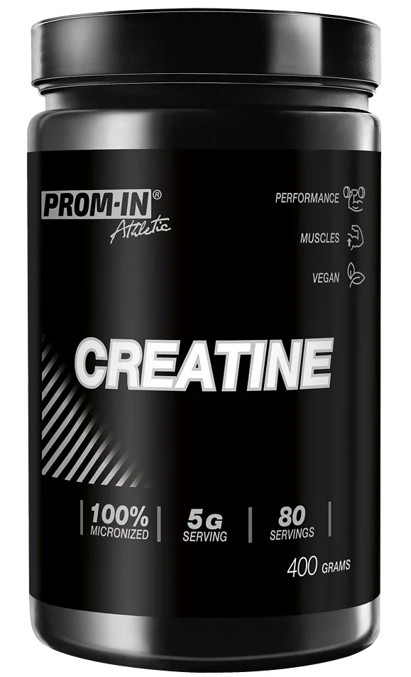 PROM-IN Creatine mikronizovaný 400 g obsahuje kreatin ve formě 100 % kreatin monohydrátu ve vysoké kvalitě s dobrou rozpustností. Kreatin zvyšuje fyzickou výkonnost při po sobě jdoucích krátkodobých intervalech vysoce intenzivního fyzického výkonu, jako je třeba typicky kulturistické posilování nebo kondiční posilovací cvičení ve fitness centru. Tohoto účinku dosáhnete při minimální dodávce 3 g kreatinu denně. Ověřená Německá kvalita!