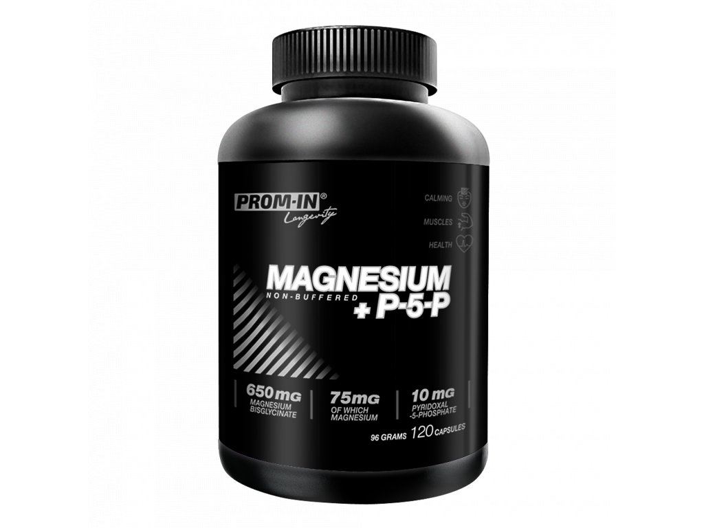 bisglycinát hořečnatý (nepufrovaný), želatinová tobolka, protispékavá látka: stearan hořečnatý; vitamin B6 (pyridoxal-5-fosfát)
