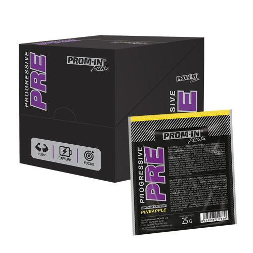 Progressive PRE představuje kombinaci ingrediencí užívaných před tréninkem. Dávky všech složek jsou nastaveny na optimální množství i pro profesionální sportovce, pro kondiční bohatě postačí poloviční dávkování. Každá dávka nabídne od každé ze 14 složek opravdu funkční množství. Obsahuje kofein v rozumném poměru k ostatním složkám.