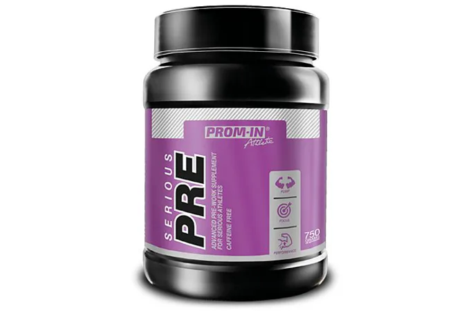 Prom-IN Serious Pre je předtréninkový doplněk stravy vhodný pro sportovce při zvýšené fyzické zátěži. Produkt představuje jedinečnou kombinaci ingrediencí a stimulačních látek podporujících zvýšení výkonnosti, napumpování a soustředěnost během vašeho tréninku. Vybírejte z několika ovocných příchutí bez kofeinu. Našlapaný předtréninkový přípravek zaměřený na maximální trénink bez nadměrné stimulace, nekompromisní složení, účinné složky v opravdu účinném množství
