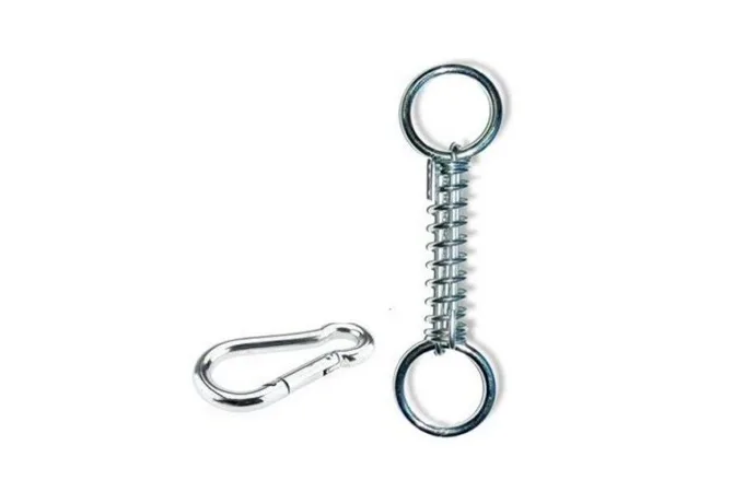 Pružina pro zavěšení boxovacího pytle DBX BUSHIDO pohlcuje rázy a vibrace z úderů a prodlužuje tak životnost pytle, jeho poruhů (řetězů), držáku, dokonce i místa montáže, ať už to je stěna, strop nebo trám. Tato 15-ti centimetrová pružina je dodávána včetně jedné karabiny a je vhodná pro pytle do 50 kilogramů. Pružina která tlumí rázy od pytle. Díky tomu není tolik namáhán pytel, závěs ani místo montáže. Vhodné pro kopy a težší cvičence (kvůli větší úderové síle), také tento hák doporučujeme pokud montáž probíha do slabšího zdiva. Při tréninku na pytli pověšeném na pružině cítíte poté lepší tlumení.