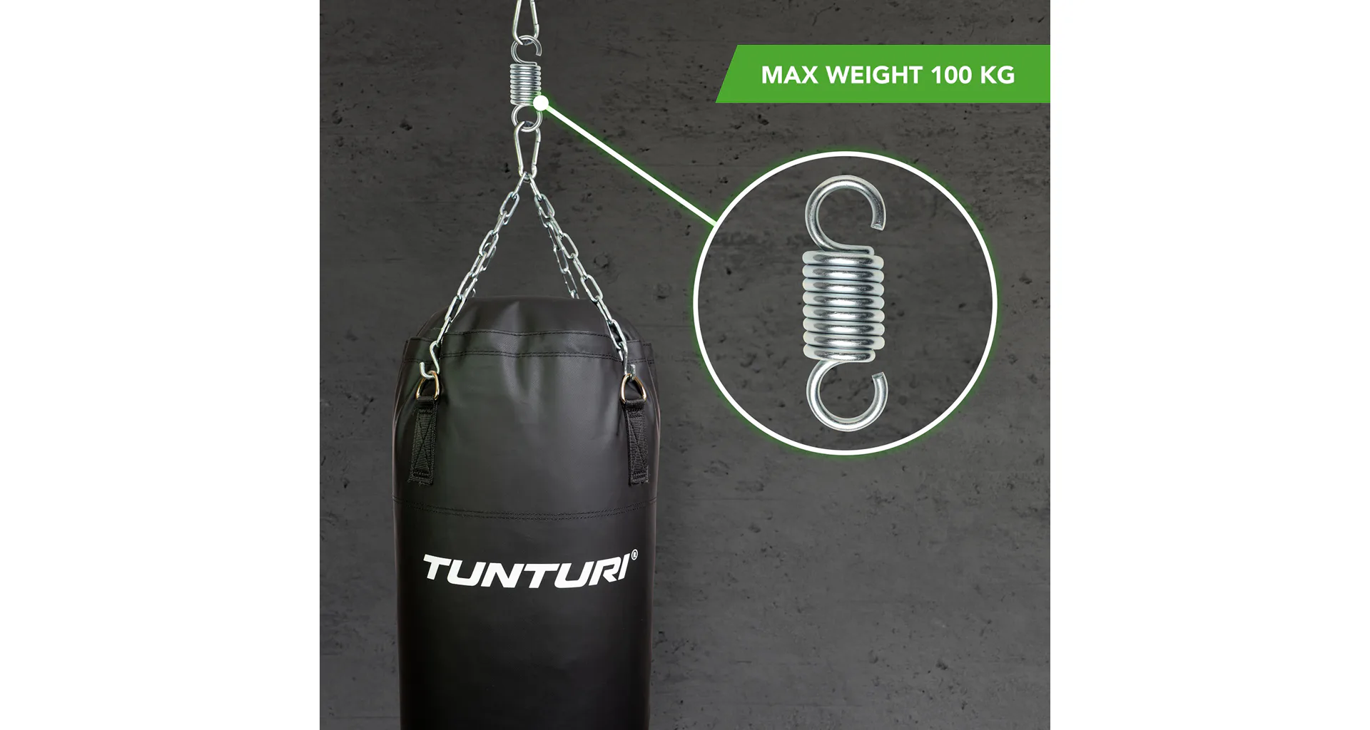 Rádi cvičíte s boxovacím pytlem? A máte rádi pořádné kopy a údery? Vibrace z nárazu se přes boxovací pytel šíří závěsným řetězem a mohou poškodit strop, nebo stěnu. Tato Pružina pro boxovací pytel Tunturi neutralizuje vibrace a zabraňuje poškození stěny nebo stropu.