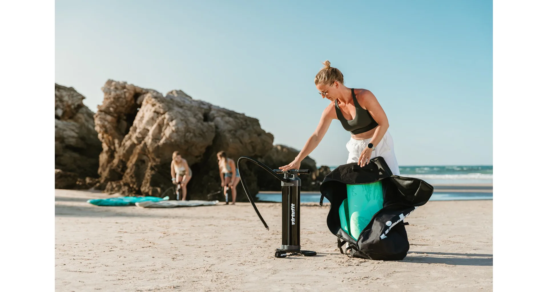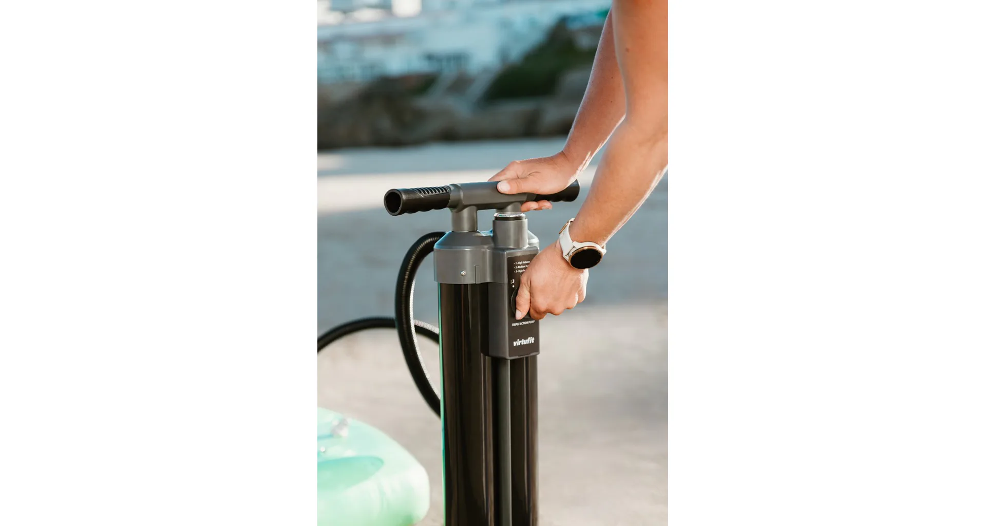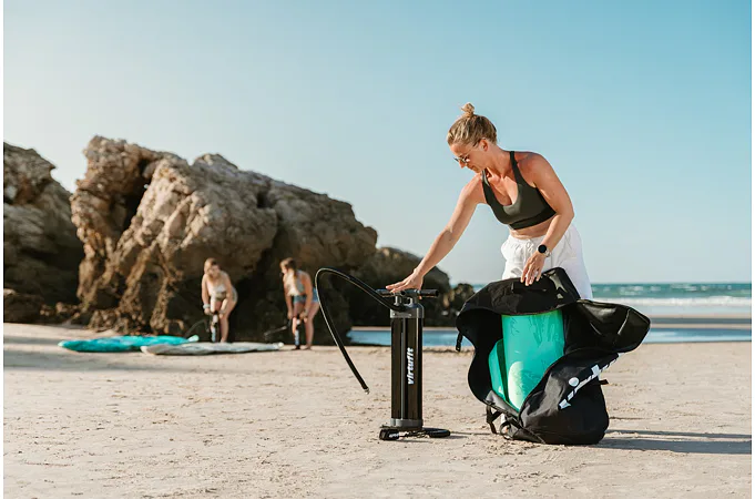 Pumpička pro paddleboard VIRTUFIT Triple Action je výkonná pumpa, která usnadní nafukování paddleboardů, kajaků, člunů a dalších nafukovacích produktů. Díky třem režimům pumpování umožňuje rychlé nafouknutí s minimální námahou – přepínáte mezi dvojčinným a jednočinným režimem podle požadovaného tlaku.