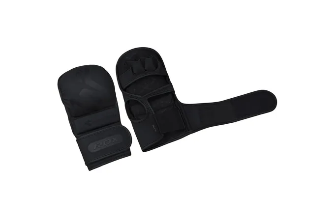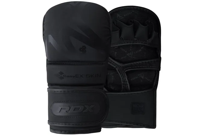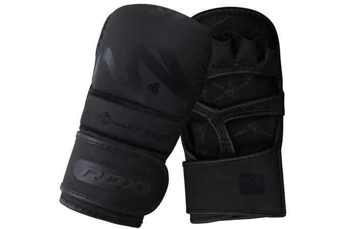 MMA grapplingové rukavice RDX T15 z elegantní řady Noir poskytují optimální odolnost proti nárazům díky kompaktní a polstrované formě MG-1. Y-Volar design dlaně přináší vylepšenou technologii ventilace, která pomáhá udržet vaše ruce v suchu a zabraňuje vzniku nepříjemného zápachu. Systém rychlého zapínání EZ zajišťuje, že vaše rukavice zůstanou na správném místě. Nabízí také velmi snadné nasazování a sundávání. Díky všestrannému designu a elegantnímu zevnějšku nemají graplingové rukavice RDX T15 Noir v bojovém průmyslu konkurenci. Umělá kůže ConvEX Skin vytvořená speciálně pro tento typ rukavic a zajišťuje dlouhou životnost a vysokou odolnost.