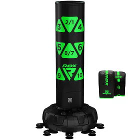 Volně stojící boxovací pytel RDX KT Ronin zelený s rukavicemi