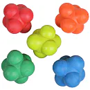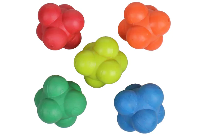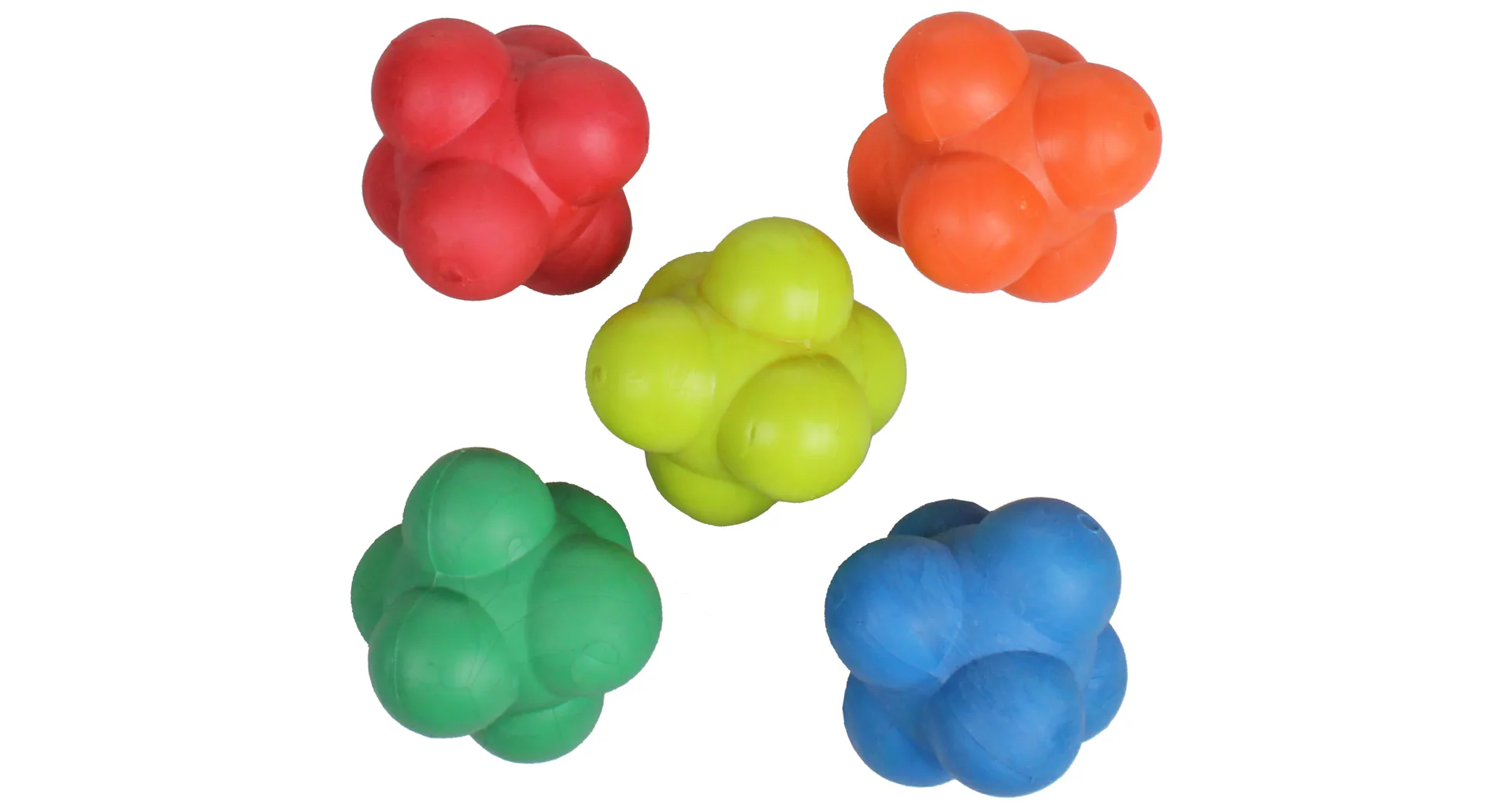 Reakční míček je netradiční zábavnou pomůckou pro zlepšení koordinace pohybu, reakcí a postřehu hráčů. Speciální navržení tvaru připomínající atom, je unikátní v tom, že předem nedokážete odhadnout směr odrazu míčku, protože odskakuje zcela nepravidelně a chaoticky. Vy se tak musíte spolehnout na rychlou reakci Vašich očí a rukou. S reakčním míčkem můžete cvičit ve dvojici, ale zvládnete to i sami nebo s pomocí cvičné zdi.