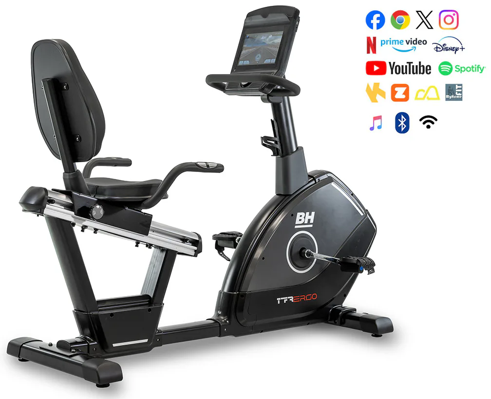 BH FITNESS TFR Ergo Multimedia je recumbent z nejvyšší řady domácích trenažérů známé evropské značky. Je určený pro náročné zákazníky požadující kvalitní mechaniku, špičkovou ergonomii a komfortní chod stroje. Je vybavený moderním brzdným systémem s dostatečným rozsahem zátěží jak pro domácí trénování začátečníků, tak intenzivní sportovní trénink.