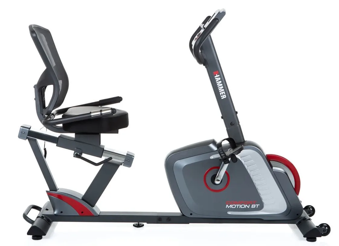 Hammer Comfort Motion BT je horizontální rotoped tzv. recumbent, vhodný do domácího prostředí pro rehabilitaci. Díky opěradlu je trenažér šetrný k vašim zádům a budete mít větší záruku stability při tréninku, hlavně pokud jste po úrazu či máte omezenou hybnost.