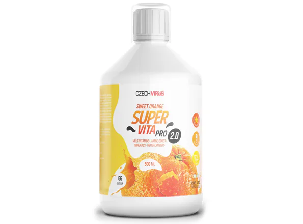 - ve 2 želatinových kapslích (hovězí želatina, barvivo: oxid železitý): kyselina L-askorbová 200 mg (250*), hořčík (hořečnaté soli kyseliny citronové, bisglycinát hořečnatý) 100 mg (27*), plnidlo: mikrokrystalická celulóza, extrakt z hroznových semínek (95% proanthokyanidinů) 50 mg, niacin (nikotinamid) 20 mg (125*), LactoSpore® Bacillus coagulans 108 spór, zinek (bisglycinát zinečnatý) 15 mg (150*), vitamin B1 (thiamin-hydrochlorid) 12 mg (1091*), vitamín B2 (riboflavin) 10 mg (714*), vitamin B6 (pyridoxin-hydrochlorid) 10 mg (714*), quercetin dihydrát 10 mg, panthotenát vápenatý 10 mg (167*), cholin (L-cholin bitartrát) 10 mg, inositol 10 mg, koenzym Q10 (ubidekarenon) 10 mg, železo (bisglycinát železnatý - Ferrochel®) 6 mg (43*), vitamin E (tokotrienoly DeltaGold - 35% tokotrienolů - z toho 84-92% delta-tokotrienolů, 8-16% gama-tokotrienolů) 3 mg (25*), mangan (bisglycinát manganatý) 1 mg (50*), měď (bisglycinát měďnatý) 1 mg (100*), bór (boritan sodný) 1 mg, luteinové estery BiolutTM 1 mg, plnidlo: maltodextrin, vitamin A (retinyl-acetát) 800 μg (100*), kyselina lisová (kys. pteroylmonoglutamová) 400 μg (200*), chrom (pikolinát chromitý) 200 μg (500*), selen (L-seleno-methionin - Selenium SeLECT®) 150 μg (273*), D-biotin 150 μg (300*), protispékavá látka: stearát hořečnatý, vitamin D (cholekalciferol) 25 μg (500*), protispékavá látka oxid křemičitý, vitamin B12 (methylkobalamin) 50 μg (2000*), vitamin K (menachinon-7 K2VITAL® Delta) 11 μg (15*).