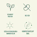Protein na rostlinné bázi je k dispozici ve třech chutných přírodních příchutích, Cacao & Caramel, Vanilla Bean a Wild Berry, má nízký obsah cukru, obsahuje trávicí enzymy a LactoSpore®, přátelské bakterie.