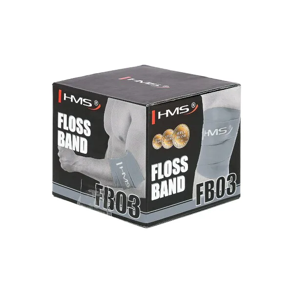Gumová páska HMS FB03 se používá k rehabilitaci a takzvanému flossingu, kdy se kompresní páskou opakovaně omotává a povoluje postižené místo. Tato praktika pomáhá protahovat zkrácené svaly a těžko dostupné partie. Zmírňuje bolest, zvětšuje rozsah pohybu a napomáhá regeneraci po tréninku.