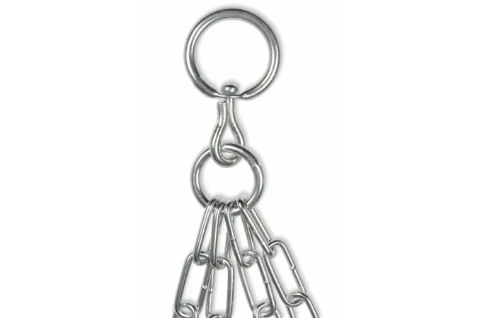 Řetězový závěs DBX BUSHIDO je určen pro zavěšení boxovacího pytle s maximální nosností 80 kilogramů. Jednotlivé řetízky jsou vyhotoveny z ocelového, pozinkovaného řetězu se svařovanými oky a jsou zakončeny šroubovací karabonou pro snadnou instalaci. Nahoře jsou řetízky spojeny pomocí svařovaného kroužku, který je spojen s otočným okem. Celková délka závěsu je 48 centimetrů.