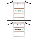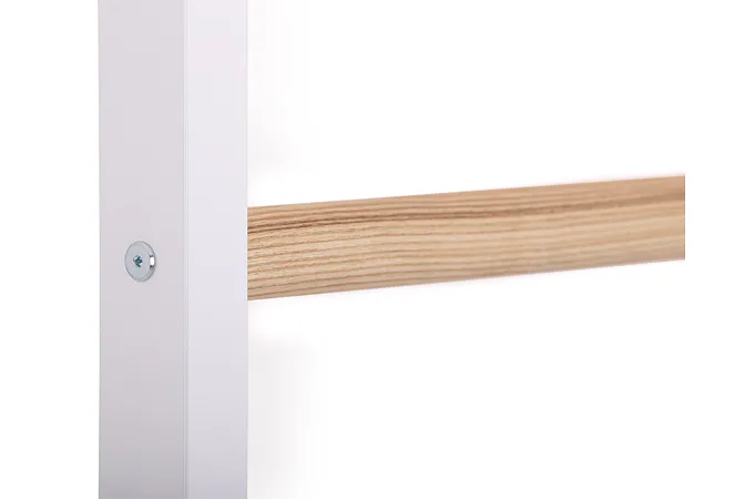 Součástí balení je kompletní upevňovací materiál do zdi – 4 horizontální úhelníky o tloušťce 5 mm, lakované vypalovanou barvou a sada vratových šroubů do ribstole. Stabilní a designově zdařilé uchycení žebřiny do zdi lakovaným úhelníkem skrz bočnici ribstole. Levnější ribstole naproti tomu většinou drží jen plechové úchyty na samořezy.