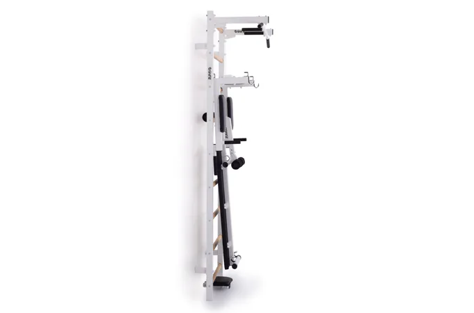 Ribstol TRINFIT Elegance s příslušenstvím je kompletní fitness set české ruční výroby, který na prostoru do 2 m² nabízí multifunkční domácí posilovnu. Kombinace pevné oceli a dřevěných jasanových příček zajišťuje dlouhou životnost, stabilitu a zdravotní nezávadnost.