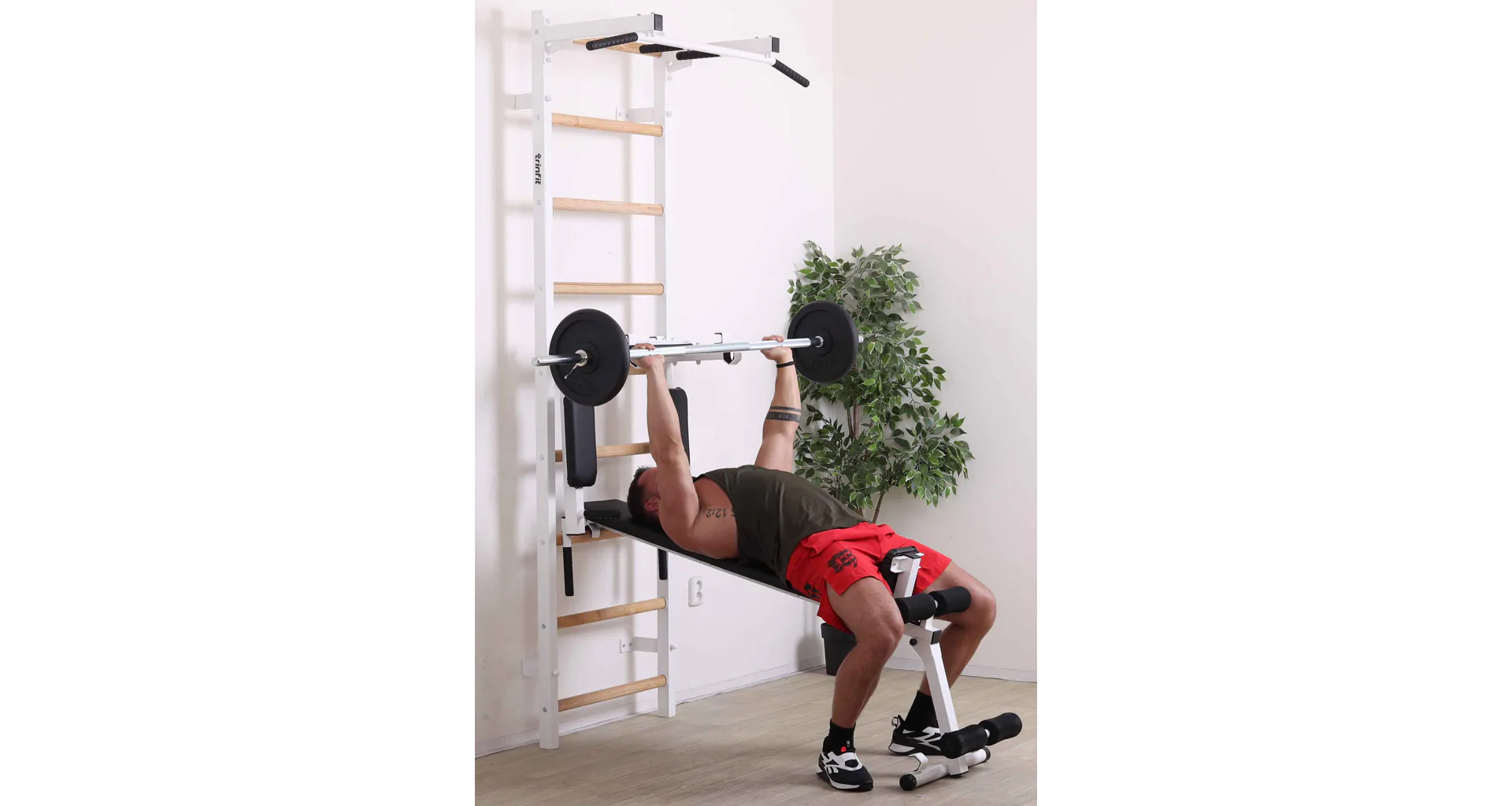 Ribstol TRINFIT Elegance s příslušenstvím je kompletní fitness set české ruční výroby, který na prostoru do 2 m² nabízí multifunkční domácí posilovnu. Kombinace pevné oceli a dřevěných jasanových příček zajišťuje dlouhou životnost, stabilitu a zdravotní nezávadnost.
