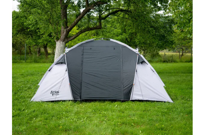 Rodinný stan ACRA ST07 pro 4 osoby se dvěma zatmavenými ložnicemi (pro komfortní spaní při denním světle) pro 4 osoby. Rodinný stan je velmi vhodný pro příležitostné kempování. Předsíňka spolu se slunečním přístřeškem vytvářejí dostatek vnitřního prostoru i v případě nepříznivého počasí. I při své velikosti je velmi skladný a s pomocí laminátových prutů postavení nezabere víc než 15 minut. Vhodný pro 4 osoby. Součástí výbavy jsou ocelové kolíky a upínací šňůry.
