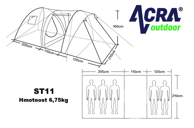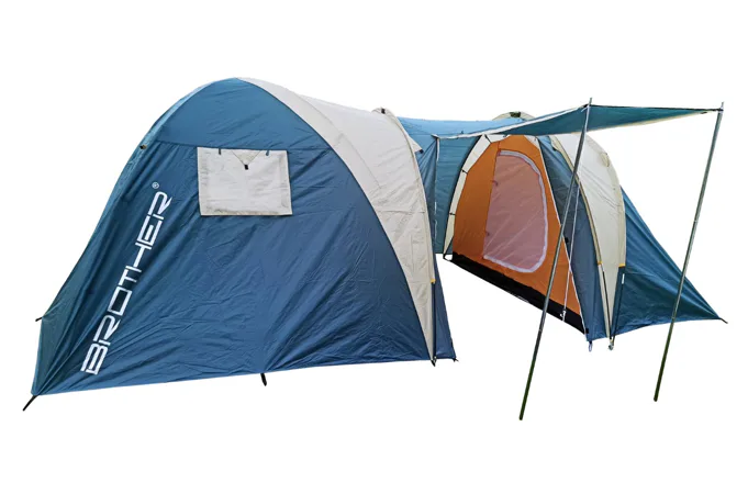 Velký rodinný stan BROTHER ST11 pro 5 osob vhodný pro příležitostné kempování. Předsíňka spolu se slunečním přístřeškem vytvářejí dostatek vnitřního prostoru i v případě nepříznivého počasí. I při své velikosti je velmi skladný a s pomocí laminátových prutů postavení nezabere víc než 12 minut. Podlepené švy zabraňují průniku vody dovnitř stanu při dešti. Stan má závěsnou ložnici a vrchní plášť přetažený přes laminátové nosné pruty.