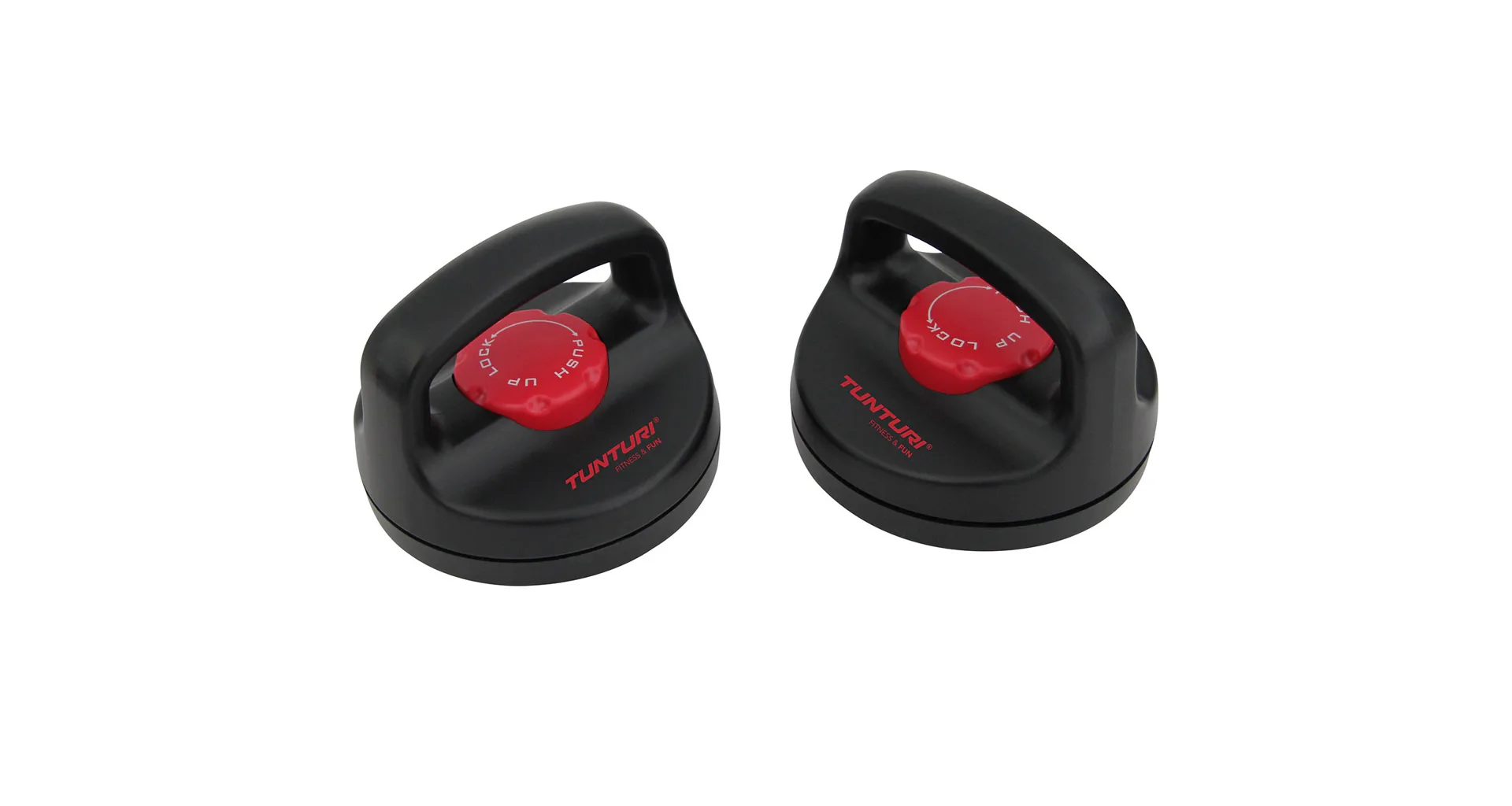 Rotační opěrky na kliky od značky TUNTURI jsou oblíbeným příslušenstvím pro dokonalé provádění kliků. Konstrukce je vyrobena z polypropylenového materiálu, která je velmi lehký avšak odolný. Rukojeti jsou potaženy protiskluzovou vrstvou, která umožňuje pevné a komfortní stisknutí. V kombinaci s protiskluzovým opatřením nohou jsou úchopy maximálně stabilní a umožňují provádět precizní kliky až do krajních poloh. Při cvičení se lokty dostávají do menšího úhlu, hrudník se dostává níže než při obyčejném kliku a cvičení je tak více efektivní. Spodní část úchopu je tvořena rotačním diskem, který umožňuje provádět kliky s rotací zápěstí a jsou tak zapojeny jiné vlákna svalů, než u klasických kliků. Zároveň je možné se na úchopy postavit a provádět pohyby tělem ze strany na stranu (podobně jako je tomu u Rotany), čímž dochází k efektivnímu posilování svalů v oblasti břicha, boků a hýždí.