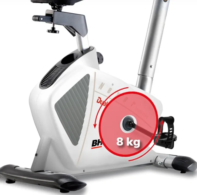 Trenažér má zcela tichý magnetický brzdný systém s manuální regulací zátěže v 8-mi úrovních. Plynulý a tichý chod stroje zajišťuje setrvačník o hmotnosti 8 kg. Díky skonu řídítek a nastavení sedla v horizontálním i vertikálním směru + sklonu sedla snadno najdete svou ideální polohu.Šlapací střed u tohoto modelu je miskový.