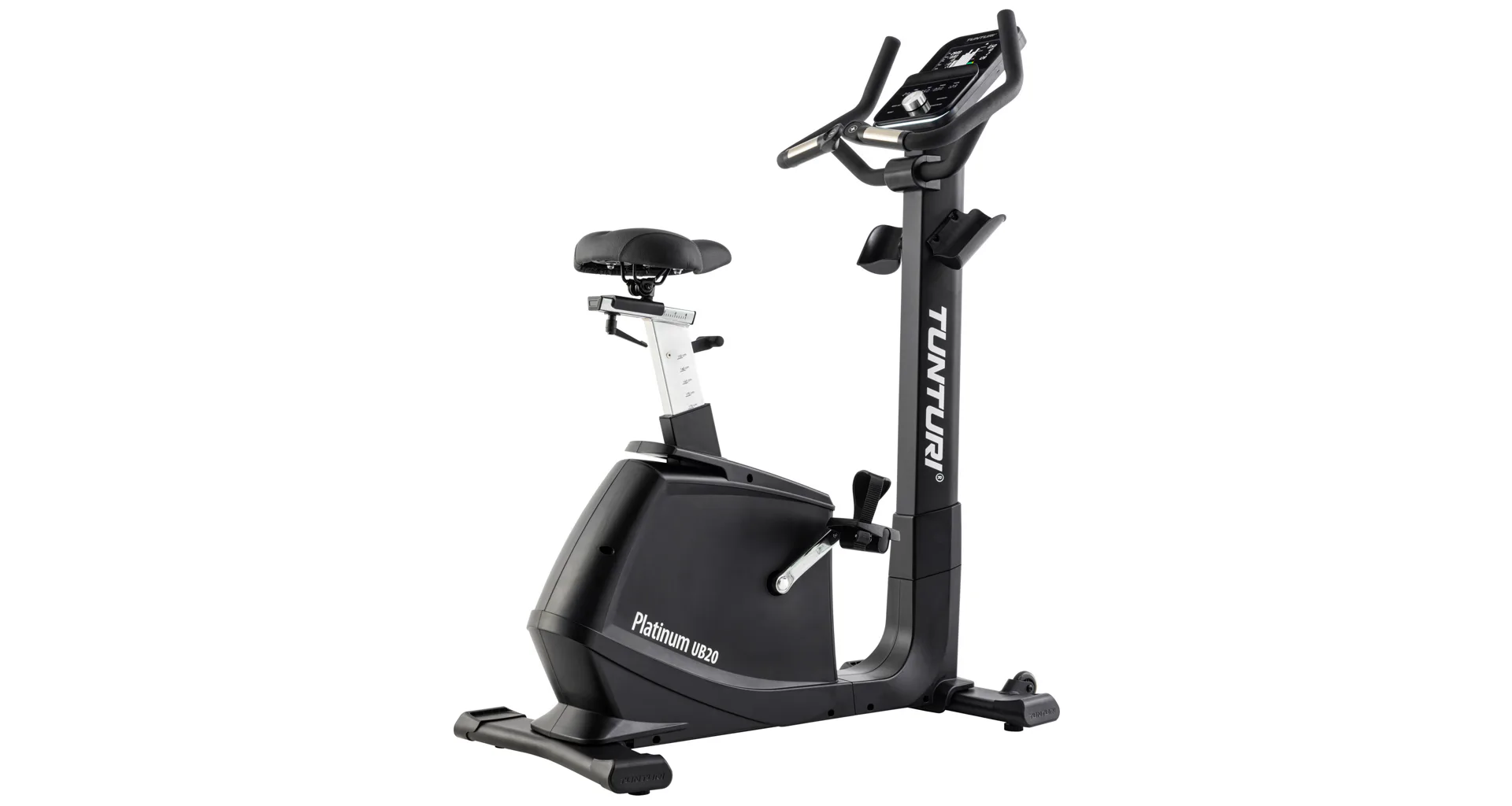Rotoped TUNTURI PLATINUM UB20 se vyznačuje perfektní ergonomií a maximálním pohodlím. To především díky horizontálně a výškově nastavitelnému sedlu, ergonomickým madlům s tlačítky pro ovládání zátěže a komfortním pedálům s nastavitelnými klipsnami.