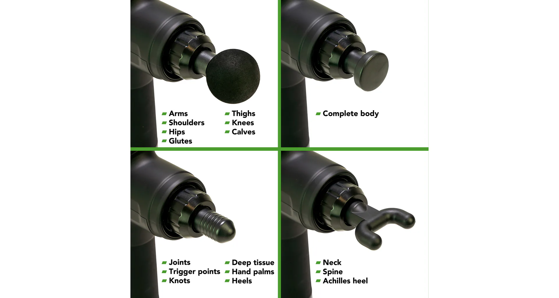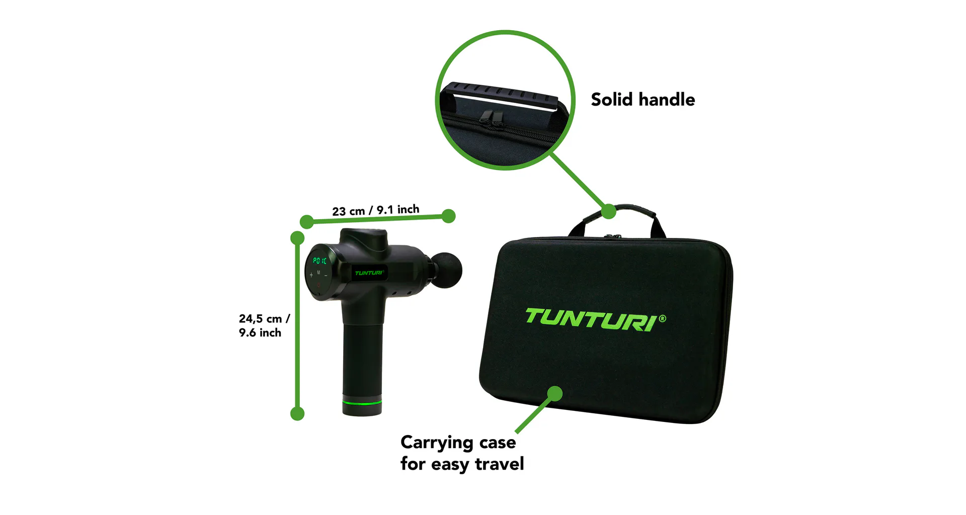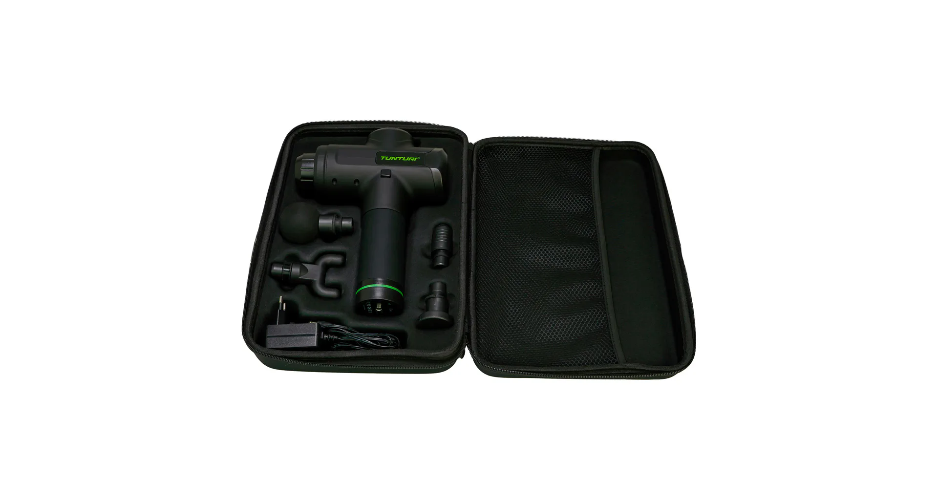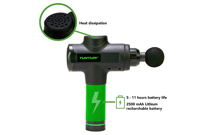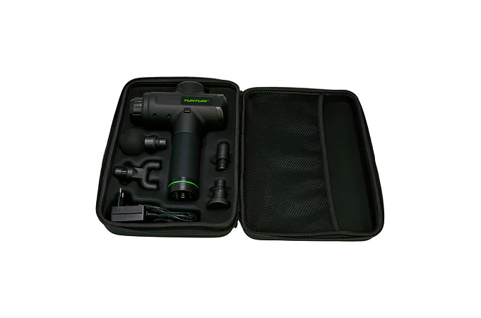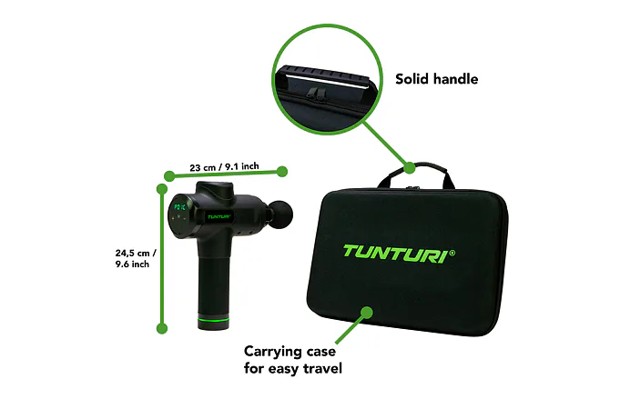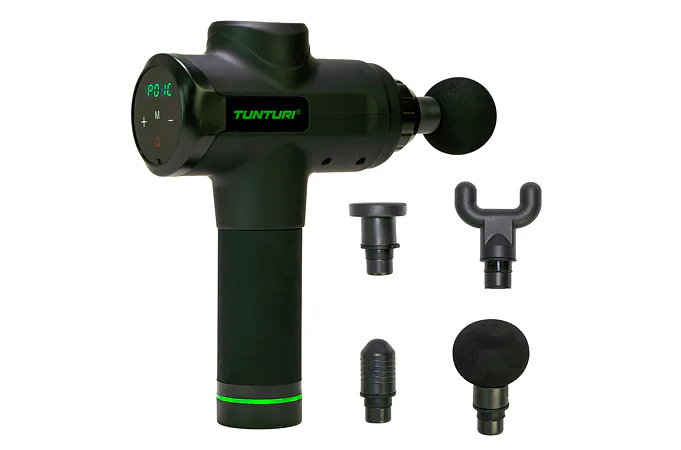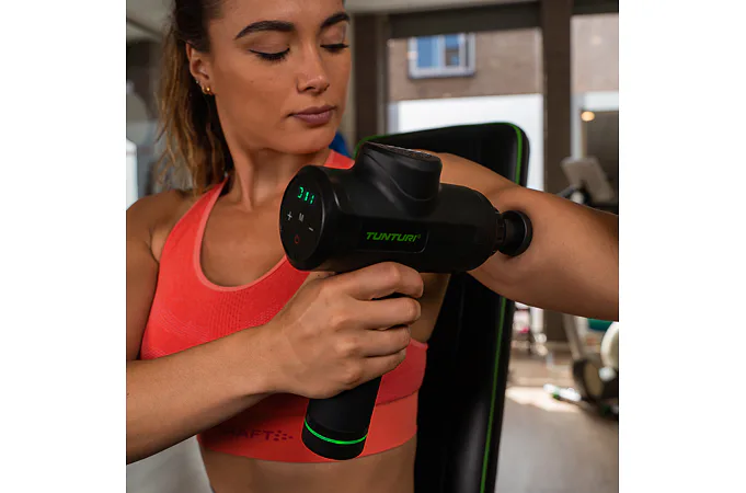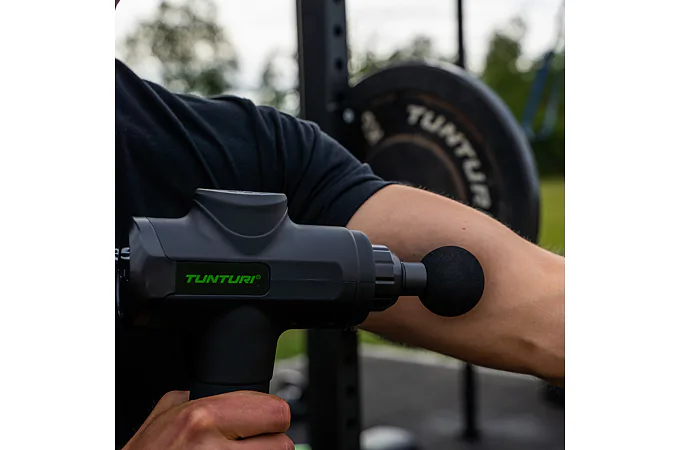 Ruční masážní stroj TUNTURI Massage Gun představuje perfektní pomůcku pro fyzioterapeuty, rekreační i profesionální sportovce, jelikož pomáhá zmírnit svalové napětí a ztuhlost, zvyšuje rozsah pohybu a současně zlepšuje cirkulaci a průtok krve. Použití masážní pistole je velice snadné a vhodné jak před sportovním výkonem jako metoda protažení, tak i po něm, protože regeneruje svaly, zmírňuje křeče vzniklé intenzivní fyzickou aktivitou, snižuje tvorbu kyseliny mléčné a také přispívá k jejímu vyloučení. Ruční masážní stroj TUNTURI Massage Gun můžete využívat i v případě zranění - urychluje proces rehabilitace.