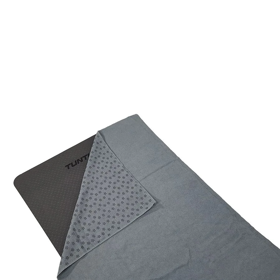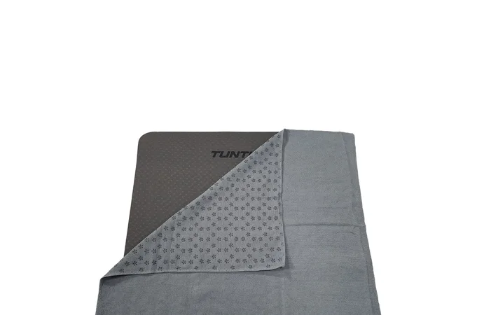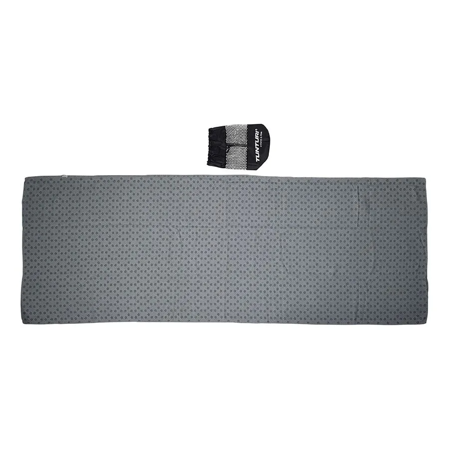 Ručník na jógu TUNTURI s taškou je luxusní pomůcka na jógu s protiskluzovými silikonovými výstupky. Ručník má šité okraje a a je dlouhý 180 cm a 63 cm široký. Je dodáván s nylonovým obalem. Ručník lze jednoduše umýt a rychle usušit. Ručník je v dispozici v různých barvách.
