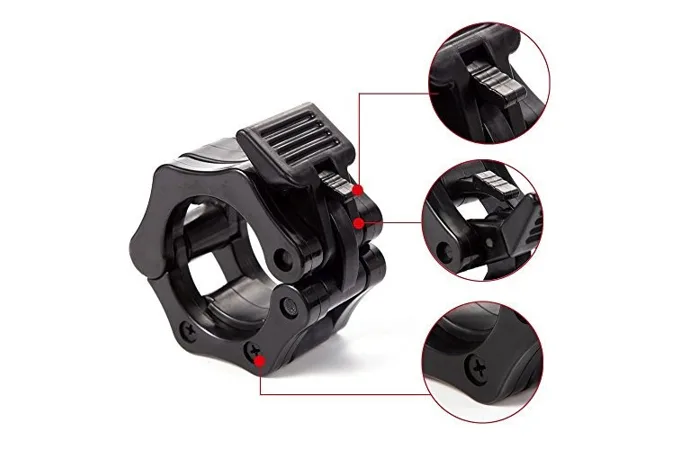 Odolná nylonová konstrukce s velkou pákou umožňuje snadné a bezpečné zajištění uzávěru jednou rukou. Bezpečnostní zámek zabraňuje uvolnění nebo sklouznutí, uzávěry jsou ideálním řešením pro BUMPER PLATE ale i jiné olympijské kotouče. Upínací uzávěr se skládá z pružné plastové obruby, která se zúží přesunutím páky. Díky vnitřní protiskluzové ochraně sedí uzávěr velmi pevně a brání uvolnění nebo sklouznutí kotoučů.