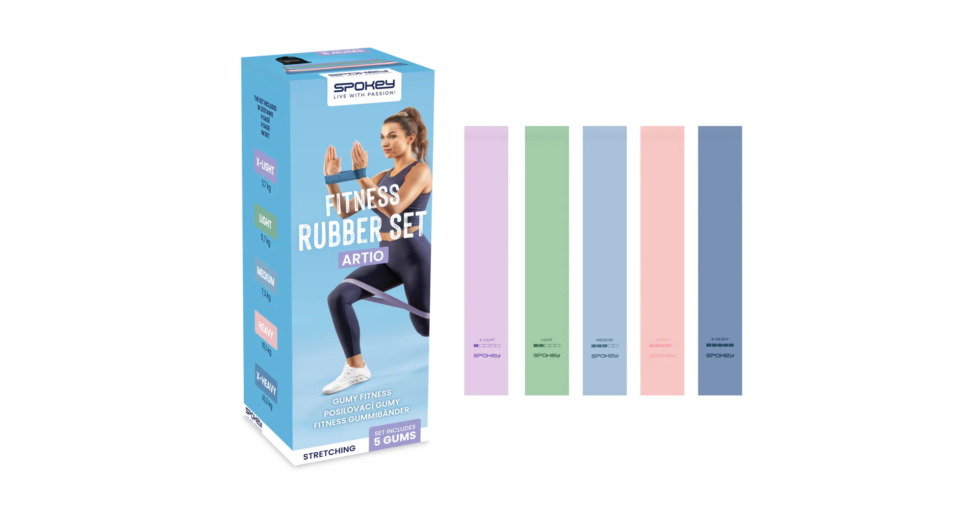 Pro budování formy je důležitým faktorem aerobní cvičení a používání drobného fitnessu, do kterého mimo jiné řadíme také fitness gumy. Díky nim obohatíte svůj trénink a zapojíte svaly, na kterých vám záleží! Gumy fungují podobným způsobem jako gumový expandér – umožňují vám provádět strečink nebo pohyby do boku, a díky svým vlastnostem a délce můžete do svého tréninku zařadit nové cviky, kterých je opravdu nespočet. V setu Spokey ARTIO najdete 5 gum s různou sílou odporu, díky čemuž si přizpůsobíte intenzitu tréninku svým vlastním potřebám a budete moct čelit stále obtížnějším výzvám.