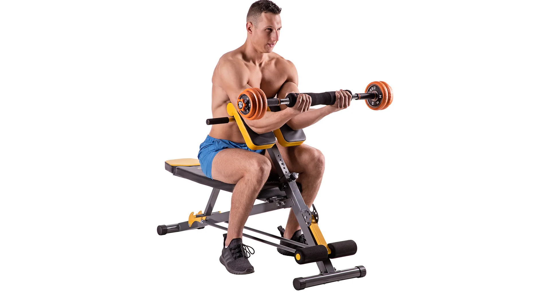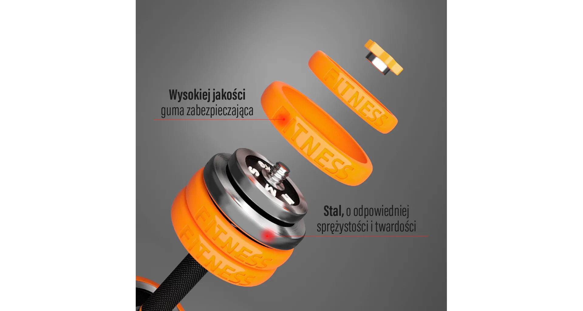Závaží jsou vyrobena z vysoce kvalitní oceli a po obvodu jsou opatřeny pryžovým návlekem, který chrání činku i podlahu před poškozením a zároveň snižuje hlučnost během odkládání činky. Všechny rukojeti a madla jsou opatřeny protiskluzovými materiály, které zaručují pevný úchop. Spojovací díl je potažen ergonomicky tvarovanou pěnou pro maximální komfort během tréninku s činkou na zádech.Nakládací jednoručky mají vroubkovaný úchop pro jistý stisk a závaží se fixují pomocí šroubovacích, hvězdicových objímek.