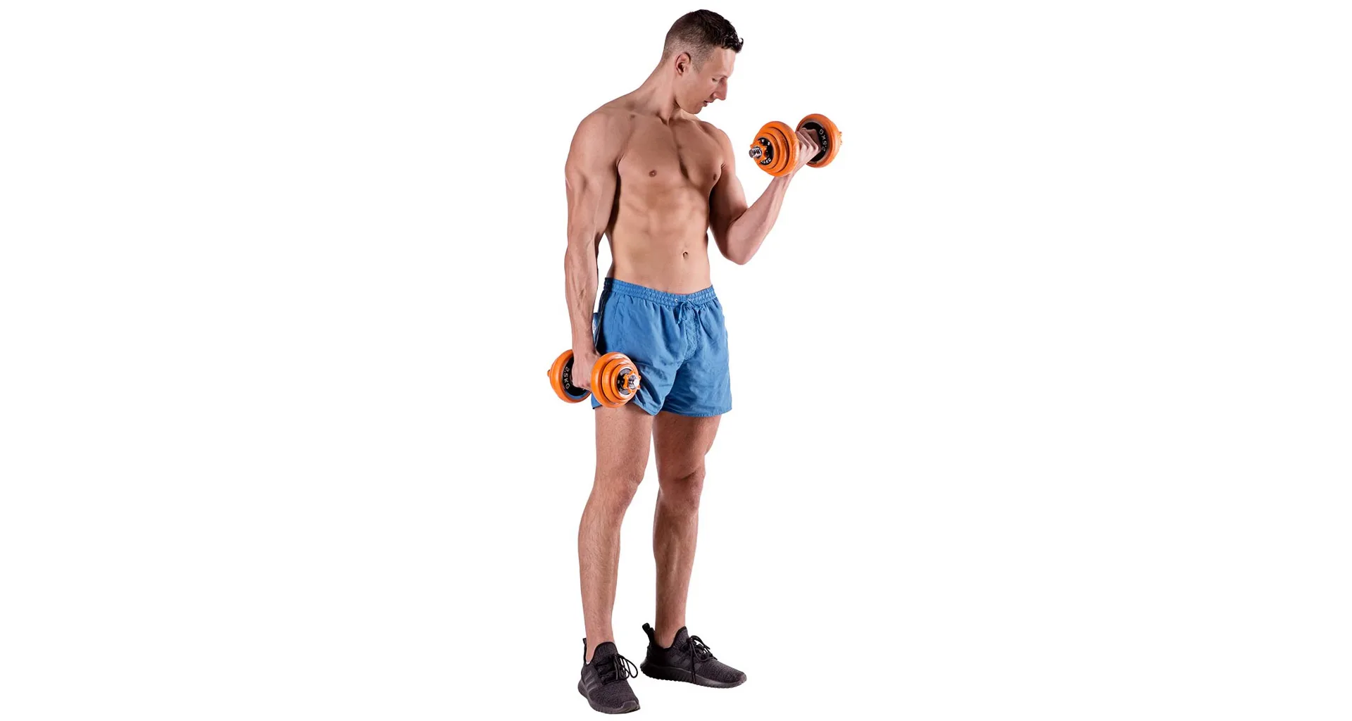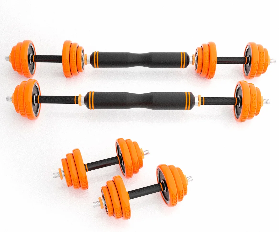 Obouruční činka vznikne po zašroubování nakládacích hřídelí do spojovacího dílu, výsledná osa má délku 88 centimetrů a úchopy jsou od sebe vzdáleny v rozmezí 40 - 66 centimetrů.