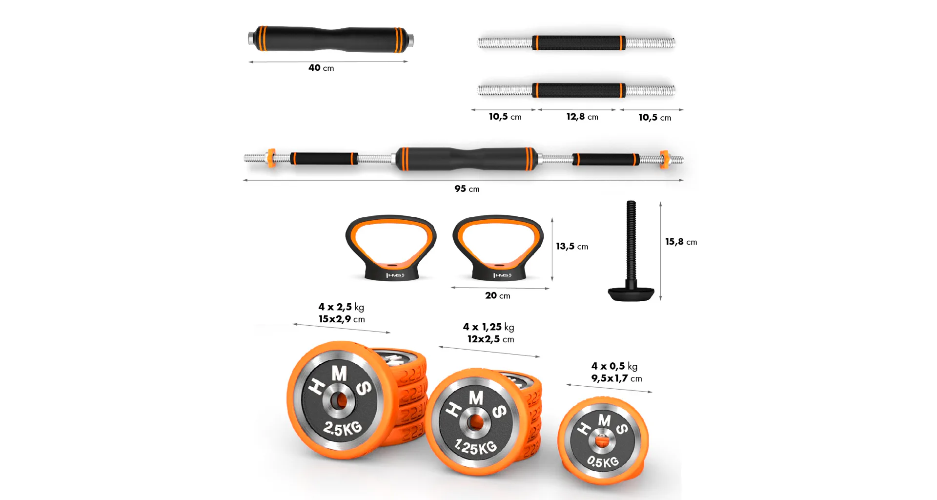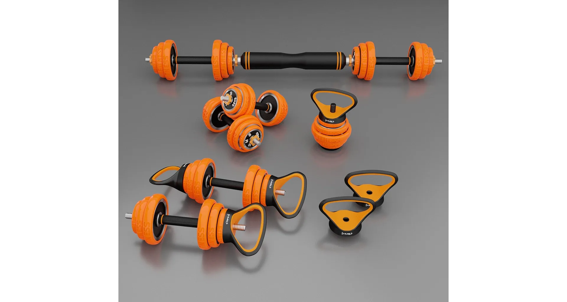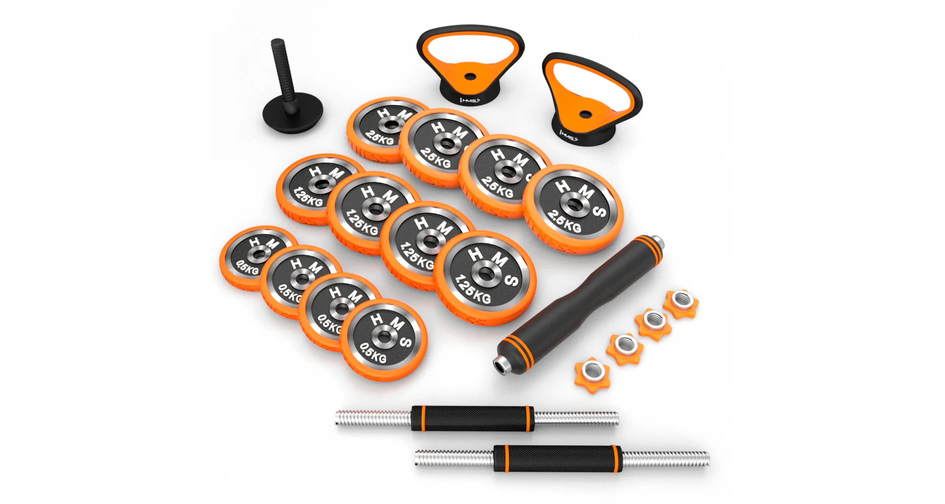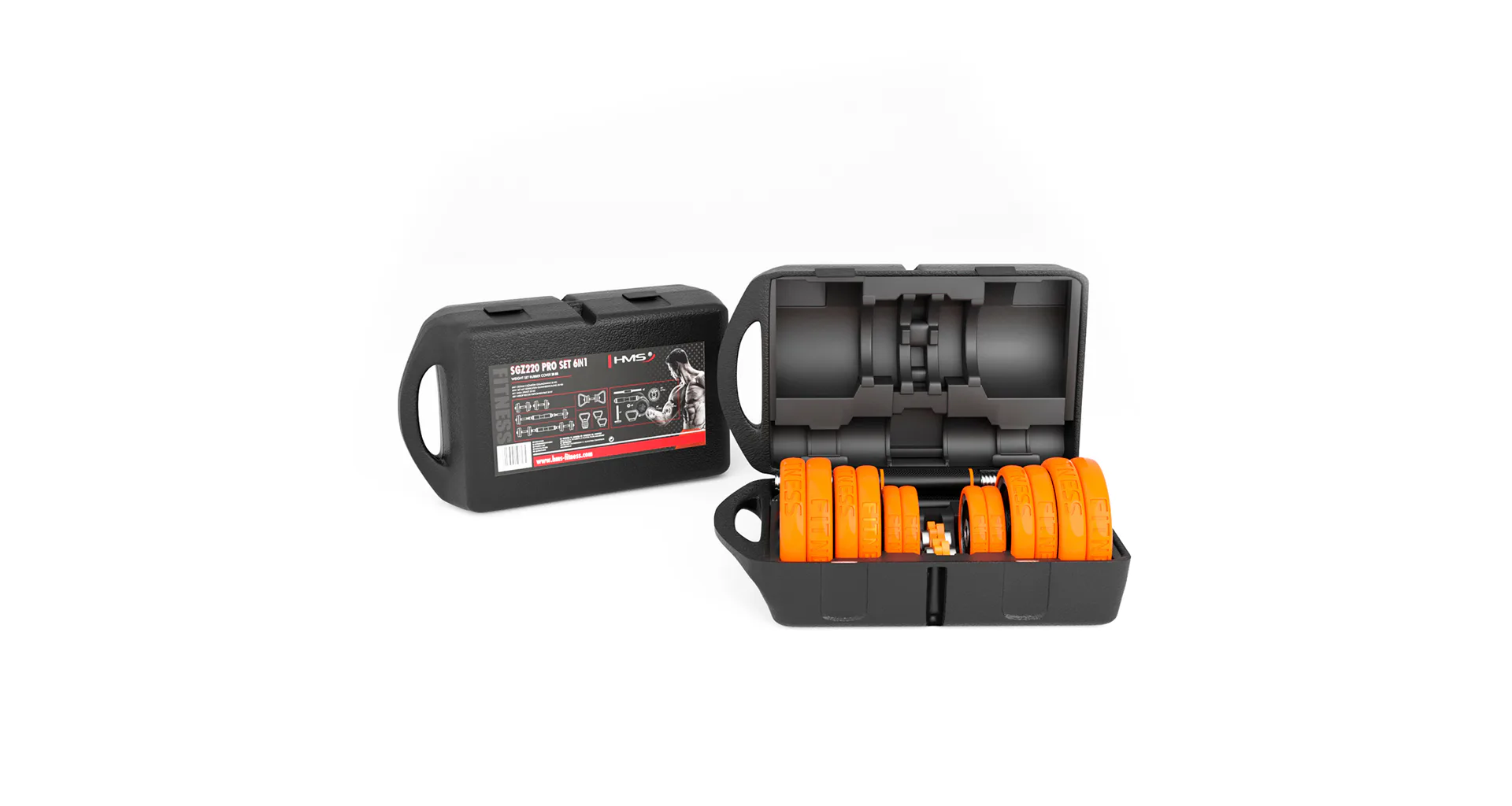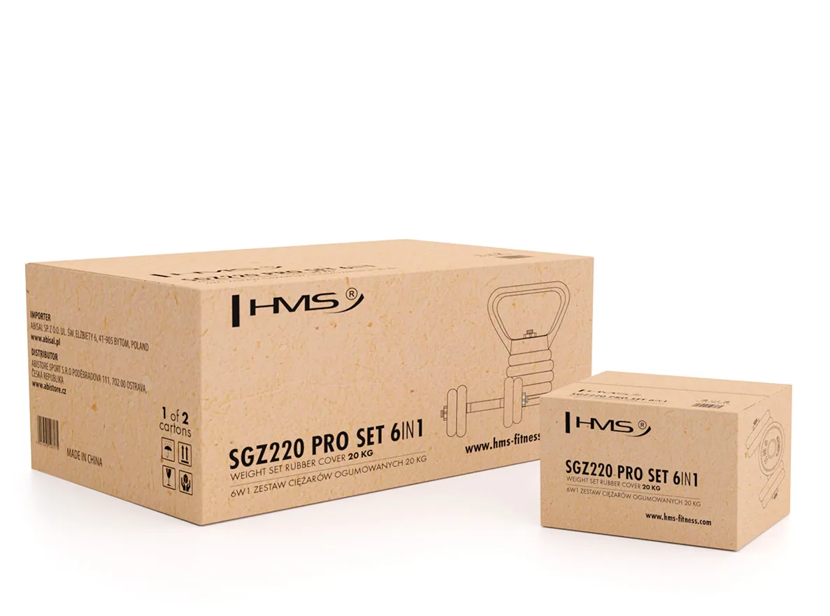 HMS SGZ220 Pro je inovativní řešení 6v1 pro každou domácí posilovnu. Základní stavební prvek tvoří 2 nakládací, jednoruční činky a sada kotoučů. Díky bohatému příslušenství jde z těchto základních činek sestavit: