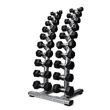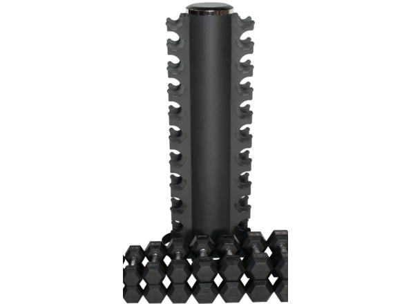Profesionální sada pogumovaných jednoručních činek se skládá z 10 párů činek v rozmězí 1 až 10 kg po 1 kg. Činky mají pevnou konstrukci a odolnou gumovou povrchovou úpravu. Ergonomicky tvarovaný chromovaný úchop umožňuje pevný úchop a pohodlné, bezpečné cvičení. Pevná závaží mají v řezu praktický tvar šestiúhelníku, aby nedocházelo k samovolnému pohybu činky po doložení.
