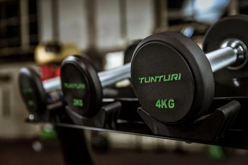 Sada profesionálních jednoručních činek Tunturi Pro PU Dumbbells obsahuje 10 párů jednoruček v hmotnosti od 2 do 12 kg.