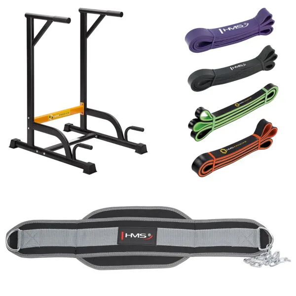 Sada multifunkčních podpěr, zátěžového pásu a odporových gum HMS PWL8306+PST04+GU-SET