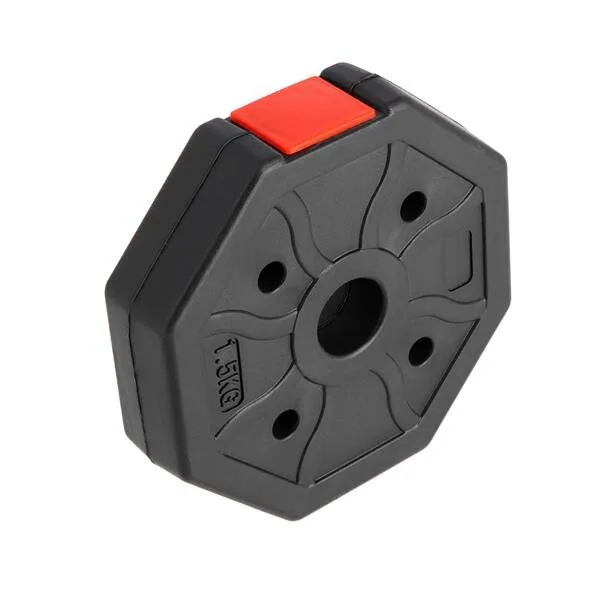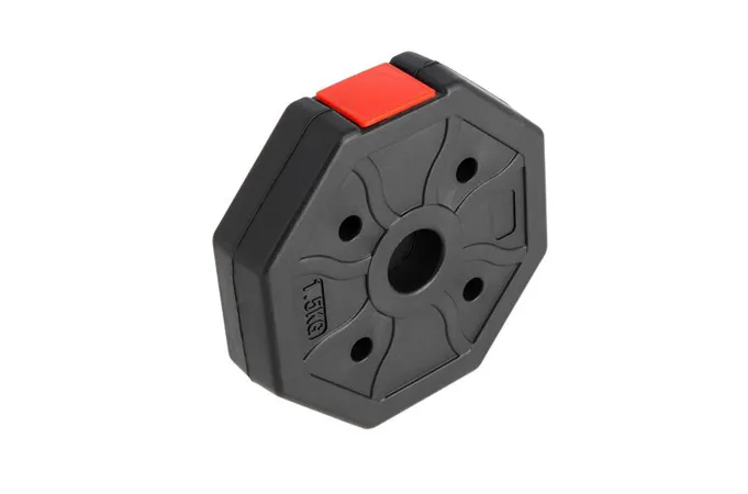 Kotouče jsou vyrobeny z trvdého plastu, který je vyplněn cementem. Obouruční osa je spojovacím dílem, do kterého se všroubují hřídele jednoručních činek. Nakládací trny jsou opatřeny závitem a závaží se zajišťuje pomocí hvězdicových matic.