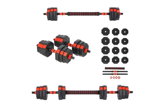 Kompletní nakládací sada dvou jednoručních a jedné obouruční činky o celkové hmotnosti 20 kilogramů, to je SGD SET20. Nakládací činky patří ke klasickému vybavení každé domácí posilovny.