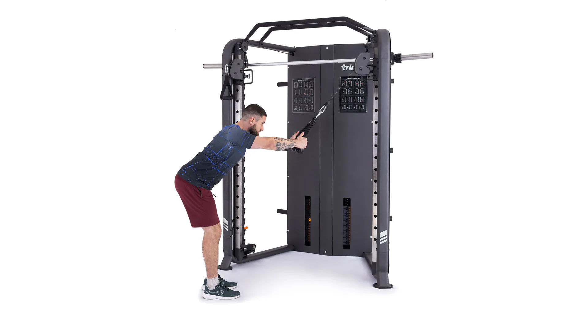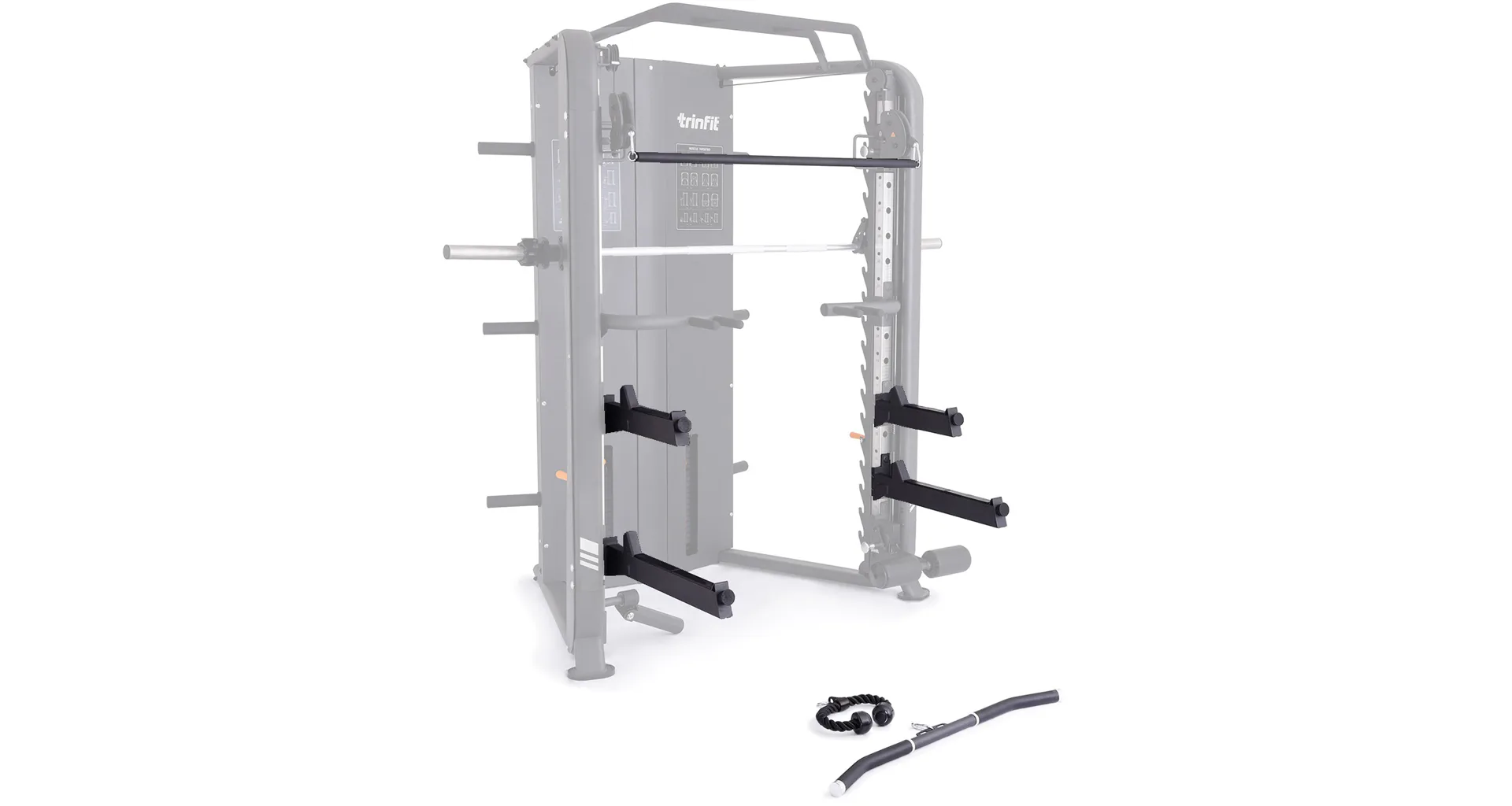 Rozšiřující sada TRINFIT pro CX70 obsahuje - háky na odkládání velké činky a spodní bezpečnostní dorazy, které jsou výškově nastavitelné. Poslouží tedy všem výškovým kategoriím. Další adaptéry jsou - tricepsové lano, díky kterému můžeme perfektně procvičit nejen triceps, obouruční osový adaptér 120 cm, se kterým můžete procvičit takřka celé tělo a široký zádový adaptér, díky kterému procvičíte především zádové svaly.